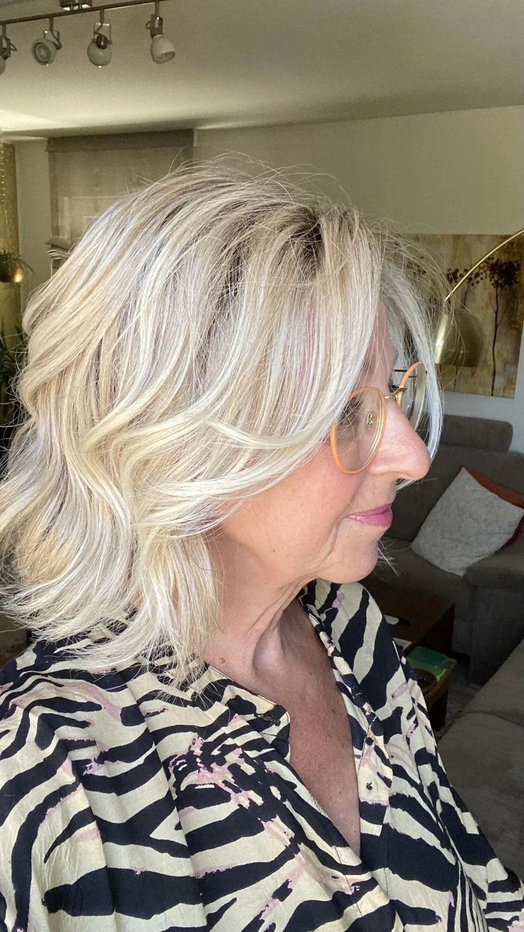 Dieser schmeichelhafte Stil ist ein "choppy" Bob voller Wellen und Bewegung. Er verfügt über einen Wimpern-Pony und nach hinten gelockte Wellen für einen durch und durch modernen Look. Leicht zulaufende Enden und natürliches Volumen bringen diese klassische Silhouette auf den neuesten Stand.