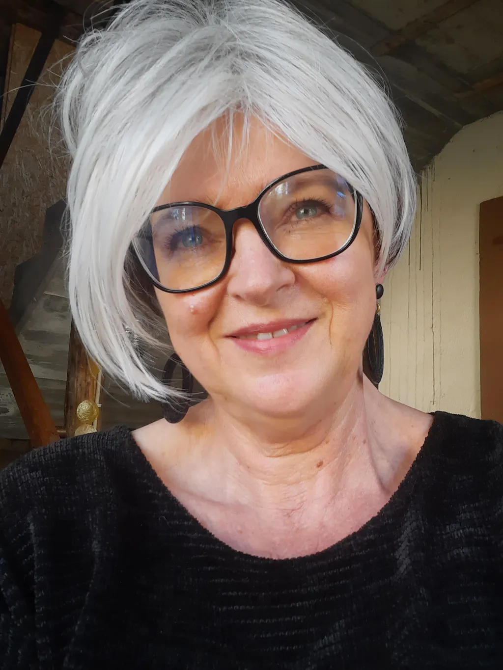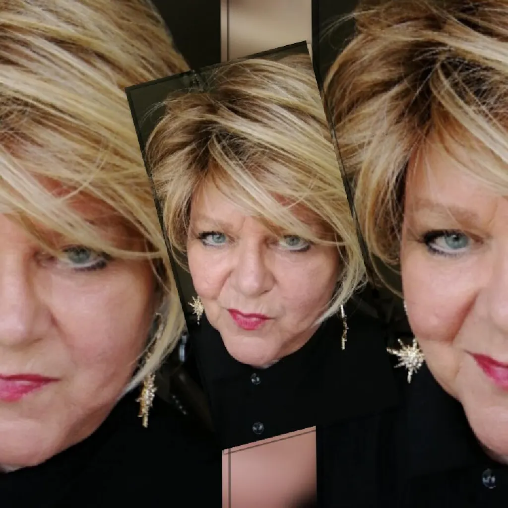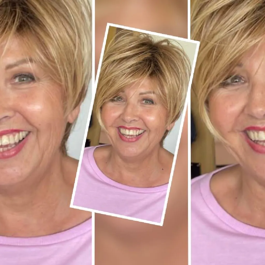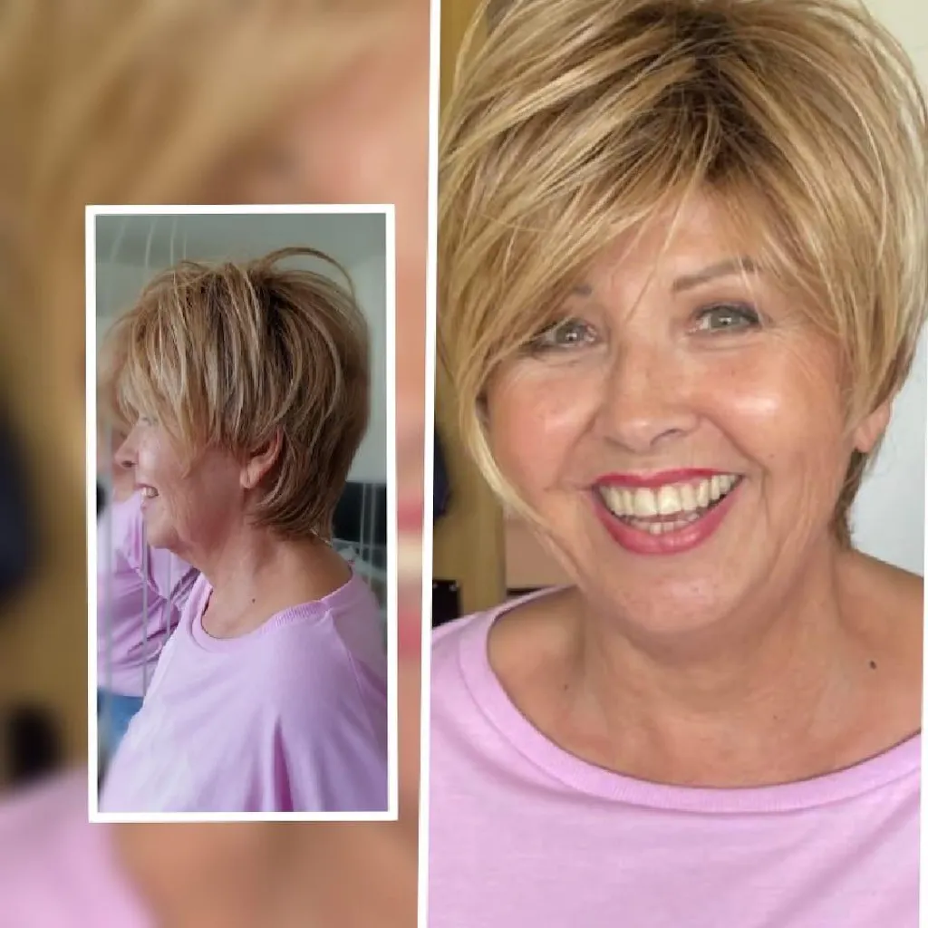 A side swept pixie with feathered texture and volume. Long enough to brush behind or over the ears.